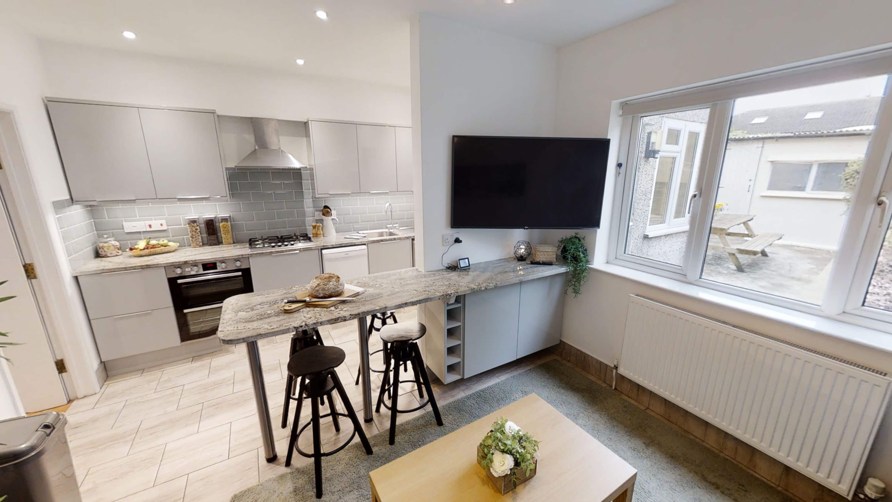 Beautiful newly refurbished kitchen/sitting room and separate newly-refurbished utility room with washing machine and tumble dryer. Close to Glenside campus, and a short bus ride to Frenchay campus. Queen size double beds in all rooms. Large flat screen TV in the living areas of this house are renovated to a high standard.  Council tax band A.